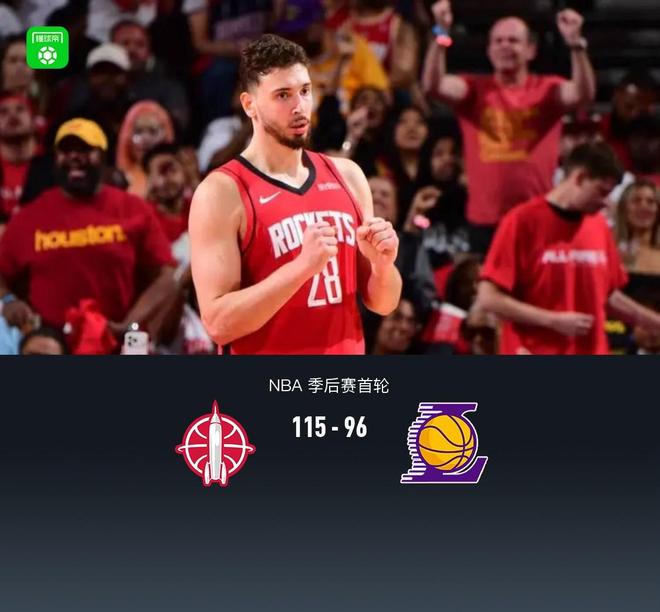 北京时间4月27日NBA 季后赛首轮G4,休斯顿火箭对阵洛杉矶湖人。首节末段火箭申京领衔逐渐取得领先拉开分差,半场火箭56-47湖人,第三节火箭延续势头轰出34-18将分差拉大至25分,其中第三节中段艾顿肘击申京二级恶意犯规直接驱逐,末节湖人短暂反扑无果收兵撤下主力,最终火箭115-96湖人,系列赛大比分仍以1-3落后。