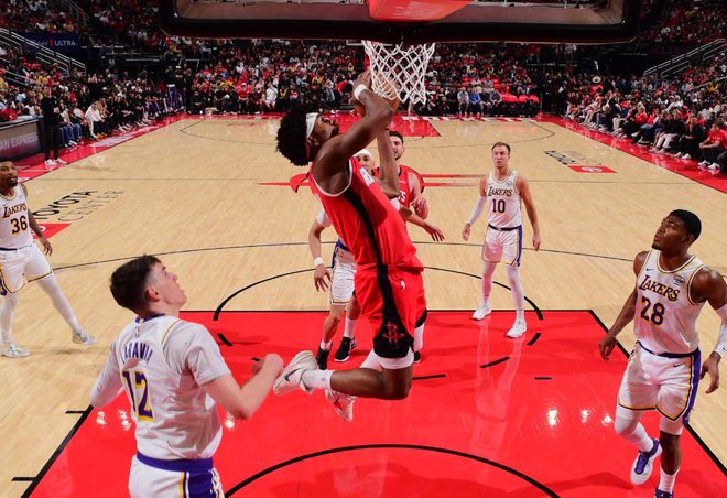 整场看下来,湖人全队真被火箭凶狠的防守以及犀利的攻防转换,把节奏带麻了。首先经过前三场的对决,老詹确实也非常累,虽然肯纳德和斯马特也都能分担一些球权,但这两个人失误也多。更何况老詹自己完全没手感。艾顿二级恶犯是转折点,因为本场比赛湖人这边就艾顿表现正常一些,但也被驱逐!失误多不怕,关键是湖人本场比赛三分球只有17中4,投射占比以及效率值都远低于前三场的水平,这还是建立在比赛最后7分钟失去悬念情况下,克内克特和尼克史密斯命中两记三分。