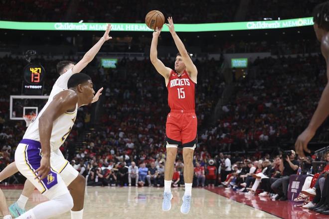下半场易边再战,第三节上来阿门上篮打进,谢泼德反击三分再来领先到了14分。然后双方一顿失误互相下饭,伊森两罚两中以后,湖人投篮不进,阿门反击抛投打板命中,火箭一波12-4的小高潮领先到了17分,雷迪克暂停。但暂停回来以后,湖人内线艾顿止血以后,伊森连得5分,申京反击2+1以后,火箭领先到了21分了。艾顿打到申京脸被二级恶意犯规直接驱逐。谢泼德面断给伊森反击暴扣再度打停湖人。暂停以后,火箭连续罚球将比赛彻底打花了,斯玛特2+1止血,三节结束湖人落后25分。