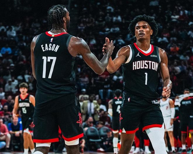 火箭队G4将比赛拖入自己擅长的节奏,伊森拿出了玩命的态度,攻防两端立下大功!防守端,伊森扮演着领防人的角色,一对一限制老詹、硬刚斯玛特,活力四射;进攻端,伊森不需要战术照顾,却有极大的自由度,卷切篮下三分扫射果断坚决!尤其是第三节,伊森弹无虚发单节轰下9分2板2断,联手阿门带队将分差拉大到20+,奠定胜局,这才是火箭球迷喜爱并期待的门神组合该有的统治力。