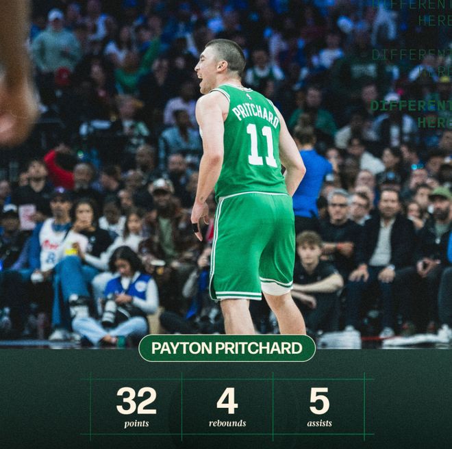 佩顿-普理查德作为替补34分38秒,21中12,三分12中6,罚球2中2,拿到32分5助攻4篮板1抢断,命中率57.1%,三分命中率50%,真实命中率73.1%,正负值+20。他的个人表现比双探花更为出色。