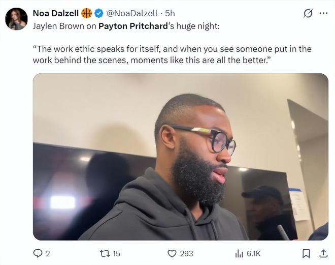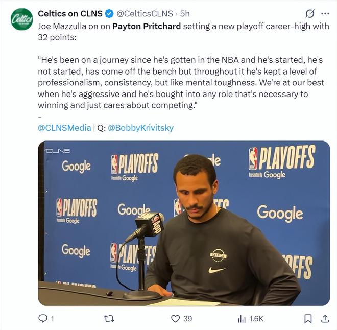 马祖拉这样评价普理查德:自从2020年他进入NBA后就一直在努力,他有时先发有时替补,他不管身处什么位置都始终保持着一贯的专业态度与稳定性,他有着坚韧的意志力,比赛中总是全身心投入并且一心追求竞争。