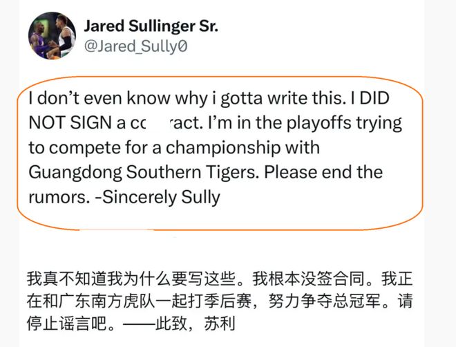 在刚刚,萨林杰就通过个人网络平台进行了辟谣,表示,有一些网友,完全就是无中生有,自己并没有与其他球队签约新合同。