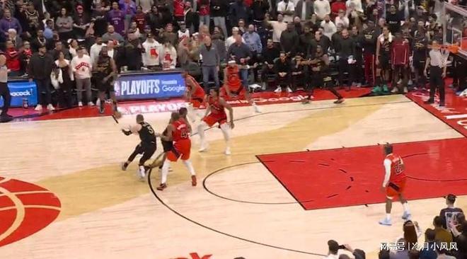 比赛还剩下1分36秒时,裁判报告指出,米切尔二次运球违例,球权应归于猛龙。