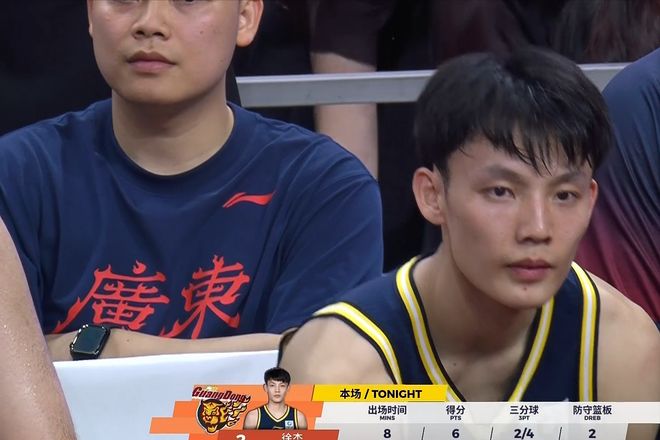 上半场广东队37比42落后,徐杰9分3篮板1助攻,全队得分暂时最高。奎因三分6中0依靠中投得到7分5篮板。徐昕9分9篮板两项最佳。