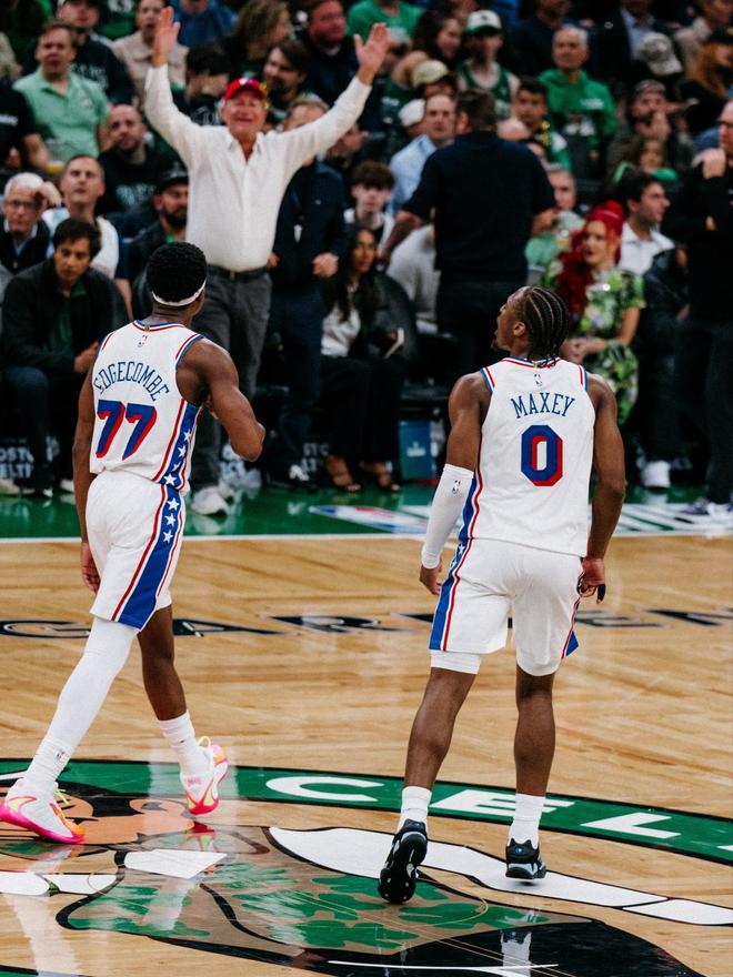 末节决战,乔治轰进三分球,随后制造了布朗的进攻犯规,恩比德跳投取分。布朗连续冲击篮下未能得分,马祖拉请求暂停。豪泽轰进2记远投,恩比德中距离取分,马克西上篮打进,格莱姆斯制造了豪泽的犯规,前者3罚全中。奎塔空接打成了2+0,绿军连续外线打铁。