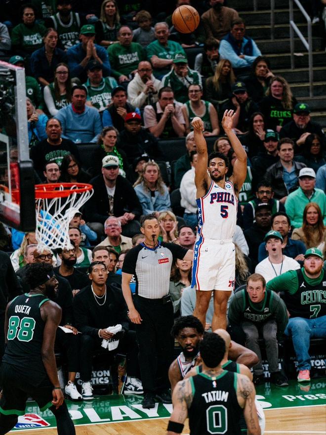 奎塔强攻篮下不进,塔图姆2罚不中,绿军陷入长达5分钟的得分荒。埃奇库姆轰进远投,费城打出了24比8的进攻狂潮,将分差扩大至15分,得以锁定大局。布朗2罚全中,距离终场仅剩1分59秒,马祖拉换上板凳席末端的球员,选择提前弃子认负,比赛就此失去了悬念。