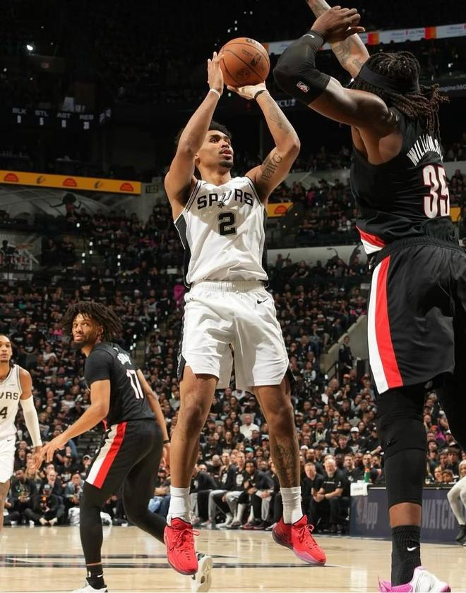 第二节开打阿夫迪亚切入上篮分差追到10分,凯尔登三分,哈珀暴扣,文班中距离马刺一波7-0马刺领先来到17分,开拓者暂停!回到比赛罗威三分不中,凯尔登快攻一条龙上篮,罗威中距离,哈珀吃饼暴扣,巴恩斯造成罗威犯规两罚一中48-28分差来到了20分,这比赛要花了。进入第二节中段开拓者外线还是投不中,回过来哈珀空接2+1,文班三分马刺54-28领先来到26分,开拓者再次暂停。回到比赛上半场比赛还剩6分44秒,马刺接连失误开拓者抓住机会打了一波9-0,关键时刻又是尚帕尼三分止血,科内特内线吃饼,卡斯尔转换暴扣,科内特2+1回敬10-0稳住局面。节末马刺始终维持20分开外的领先,阿夫迪亚两罚全中,马刺最后一攻福克斯中距离没进,这样半场打完马刺65-45领先20分!