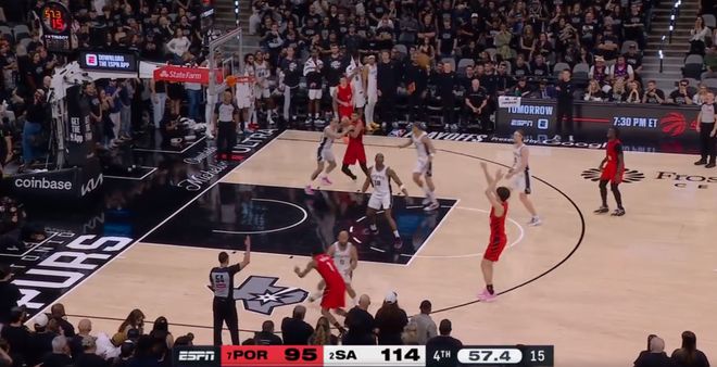 老规矩,小杨上,文班下,王不见王,在杨瀚森未出场的时间里文班亚马无人能挡,在杨瀚森出场的时间里文班亚马无人去挡。
