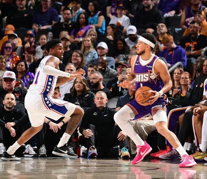 太阳上一场主场97-101惜败勇士,76人上一场客场115-119惜败湖人,本赛季首次交锋太阳客场116-110战胜76人。本场76人缺少乔治,太阳缺少阿伦、安东尼、科菲。首节开局76人2-5落后,76人立即一波7-0攻势反超,太阳追到9-9。76人连得5分,太阳继续反扑追到17-17,76人连得4分,太阳连得5分反超1分。双方继续紧咬比分缠斗,首节比赛结束76人24-22领先太阳。首节太阳21中7,其中三分13中1低迷;76人23中8,其中三分14中5,马克西8分与恩比德8+5。