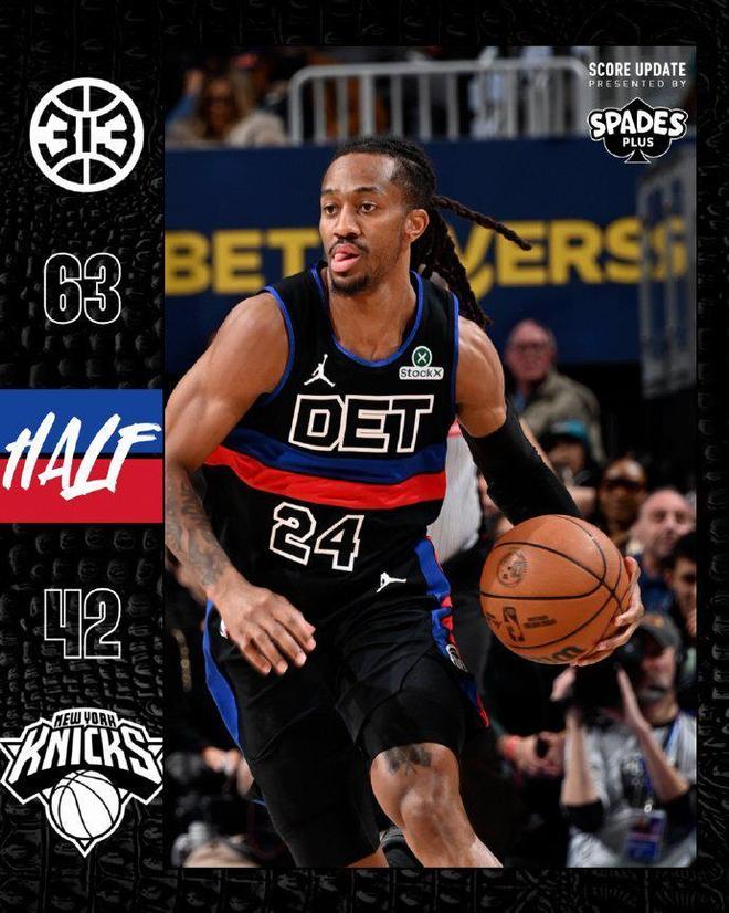 东部前二对决!活塞大胜终结尼克斯8连胜 背靠背9战8胜联盟第一