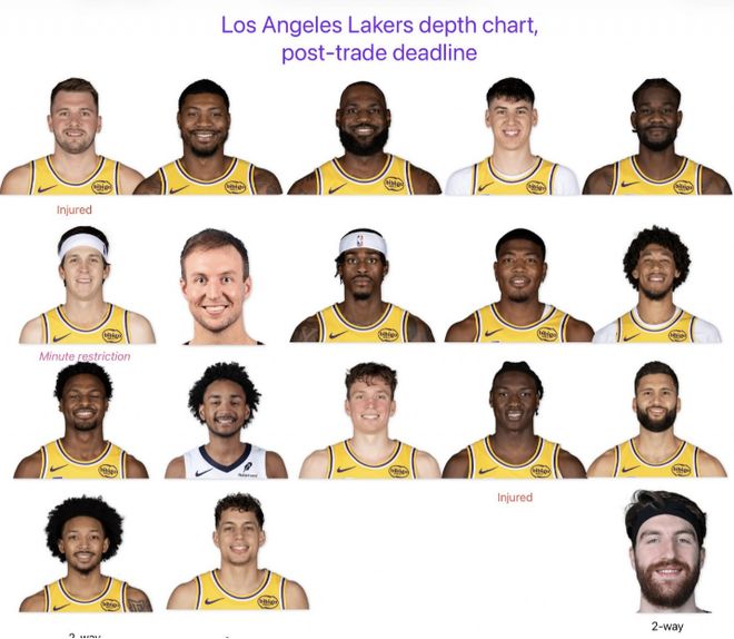 如今湖人正式签约巴夫金,成功填满球队的15人阵容名单,分别是东契奇、里夫斯、詹姆斯、斯马特、肯纳德、布朗尼、克内克特、蒂耶罗、八村垒、拉拉维亚、艾顿、范德比尔特、克勒贝尔、海斯与巴夫金。