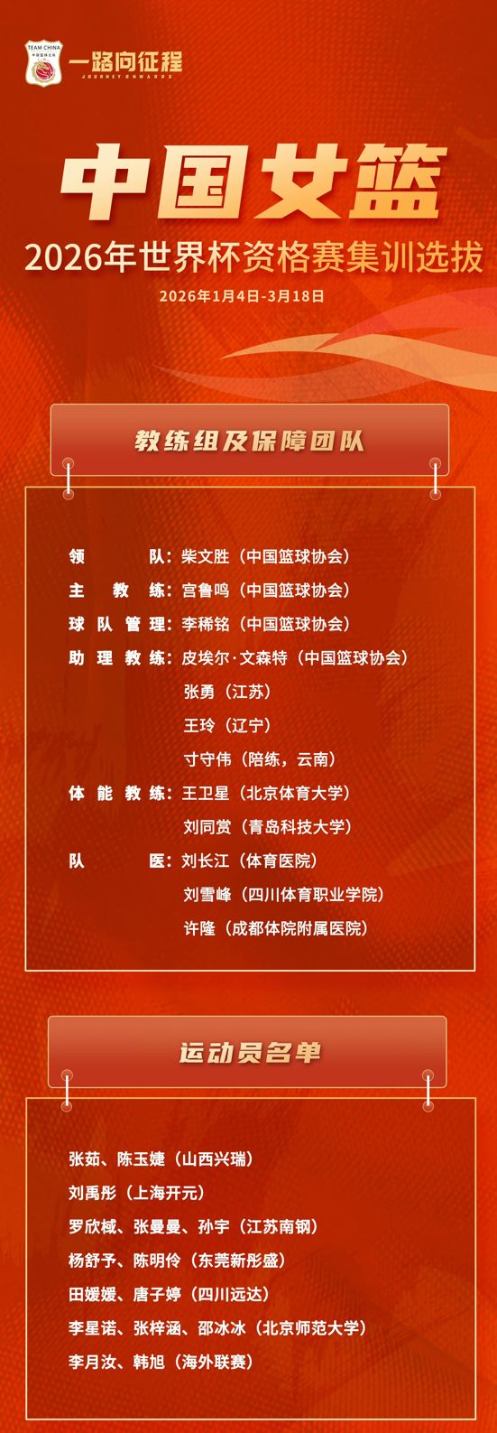 随后来到2025年的下半年,有全运会和新赛季的WCBA联赛进行,时间紧张。即便如此,中国女篮依然尽可能的在这期间进行了数次的集训。尤其是进入到2026年1月,联赛常规赛还在进行中,中国女篮就公布了一份15人名单,杨舒予等广东女篮主力上调国家队。张子宇没有入选本期,而是回到山东女篮,并且完成了WCBA的首秀。