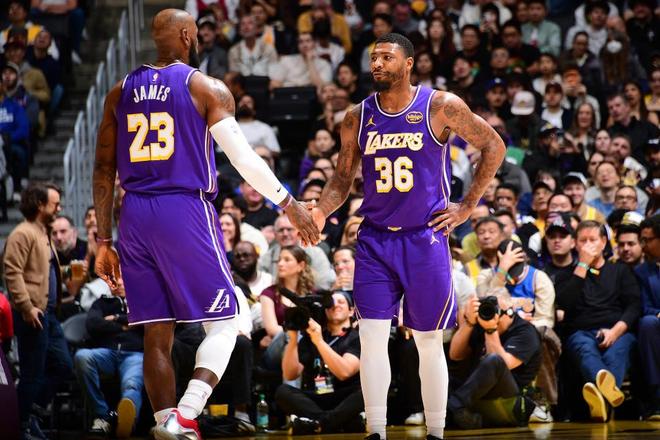 儿子布朗尼也在赛后更衣室中对父亲詹姆斯说道:“老家伙的三双(Old ass triple-double)。”