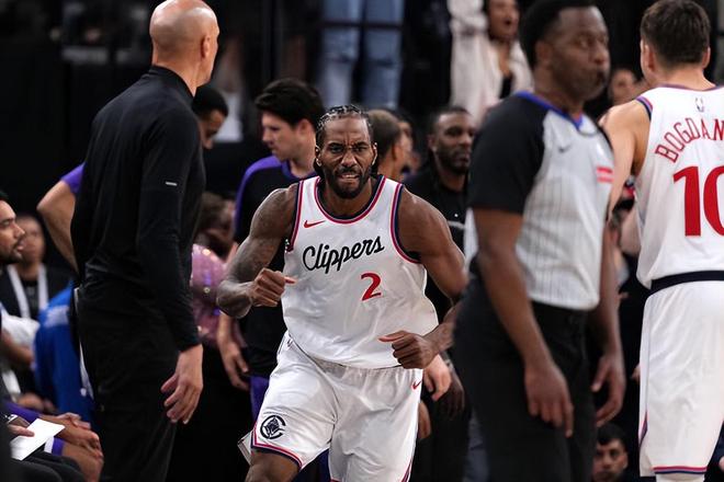 在上赛季的NBA常规赛中,伦纳德受到伤病的影响总共只代表快船出场37次,场均出场时间达到了31.9分钟,场均数据为21.5分5.9篮板3.1助攻1.6抢断0.5盖帽,还有1.9次失误和1.5次犯规,投篮命中率49.8%,三分命中率41.1%,罚球命中率81%。到了季后赛,伦纳德总共出场7次,场均出场时间达到了37.8分钟,场均数据为25分7.6篮板4.7助攻1.1抢断0.7盖帽,还有2.1次失误和1.7次犯规,投篮命中率53.7%,三分命中率40.5%,罚球命中率77.8%。本赛季开季至今,伦纳德总共出场41次,场均出场时间达到了32.8分钟,场均数据为27.9分6.4篮板3.7助攻2.1抢断0.5盖帽,还有2.1次失误和1.3次犯规,投篮命中率49.1%,三分命中率38.3%,罚球命中率91.2%。