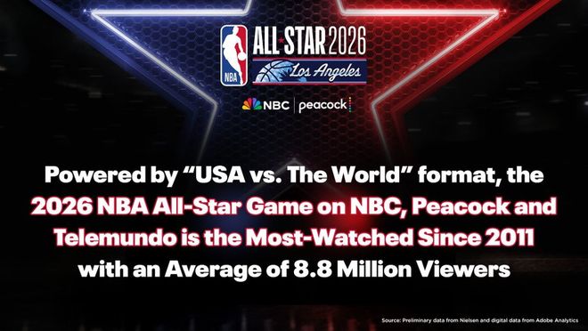 北京时间2月17日,NBA官方表示,今年全明星赛成为2011年以来收视人数最高的一届,全美平均收视人数880万。ESPN记者麦克梅纳明表示:NBA终于找到了真正可行的全明星赛赛制。本届采用美国队vs世界队,并分成三支球队进行12分钟单循环赛制大获成功,让全明星比赛重新找回了多年未见的高强度对抗。