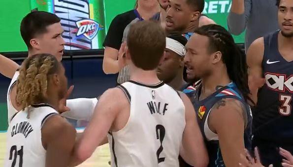 北京时间2月21日,NBA常规赛卫冕冠军雷霆主场对阵篮网,其中篮网是背靠背第二场。雷霆借助团队攻势逐步扩大20+领先优势,篮网一度追到差10分,双方二三两节接连爆发冲突。雷霆重新扩大领先优势,最终雷霆105-86战胜篮网巩固西部第一,也是紧追联盟第一的活塞,篮网遭遇3连败。