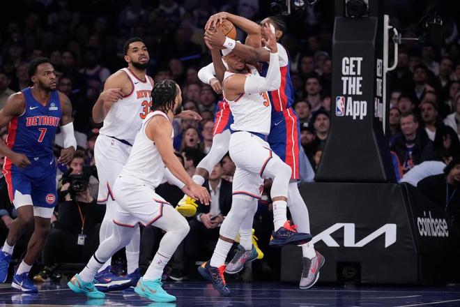 活塞过去3场连赢尼克斯、黄蜂与猛龙收获3连胜,尼克斯上一场客场138-89大胜76人,本赛季前两次交锋活塞均战胜尼克斯。本场活塞缺少杜伦与斯图尔特,尼克斯缺少麦克布莱德。首节开局,活塞2-9落后被压制,活塞之后以8-13落后。活塞连追4分,哈特上篮得分,坎宁安攻传结合引领11-2攻势反超6分。尼克斯迫近比分,双方紧咬比分缠斗,首节结束活塞28-26领先尼克斯。坎宁安11中5命中3记三分得到14分2助攻,布伦森7中3得到9分。