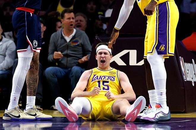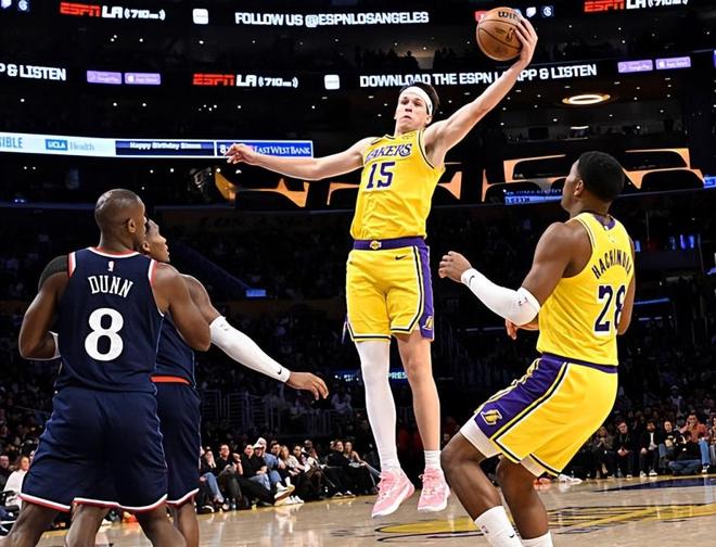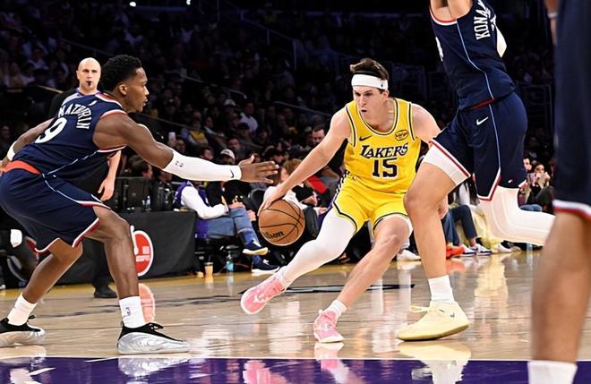 本场比赛中,湖人的先发后场球星奥斯汀-里夫斯(Austin Reaves)的表现算得上是令人刮目相看。里夫斯全场出场32分43秒,投篮15中9,三分线外5中4,罚球7中7,得到了29分6篮板2助攻2抢断的数据,还有3次失误和1次犯规,正负值为0。里夫斯在本场比赛中终于回到了先发阵容中,而他的表现也是有了显著的提升。里夫斯在进攻端展现出了全面的得分能力,他的进攻效率相当不错,他的突破能力非常突出,他在外线投篮方面的表现也是非常稳定的。看起来快船确实是没有办法对他进行有效地限制,让他得到了大量的分数。里夫斯在防守端的表现其实也并不差,其实也并没有出现什么太大的问题。总体来看,里夫斯在本场比赛中算是很好地扮演了二当家的角色,为球队的胜利做出了巨大的贡献。