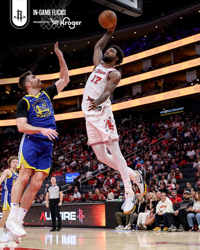 火箭队首发阵容:汤普森、伊森、杜兰特、史密斯、申京