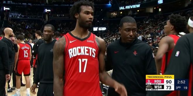 如今对阵奇才的比赛,伊森接连两次推奇才球员沃特金斯,他上一次进攻回合推倒沃特金斯被吹T。只是伊森随后回放再度推搡沃特金斯,导致再吃一T被驱逐离场。
