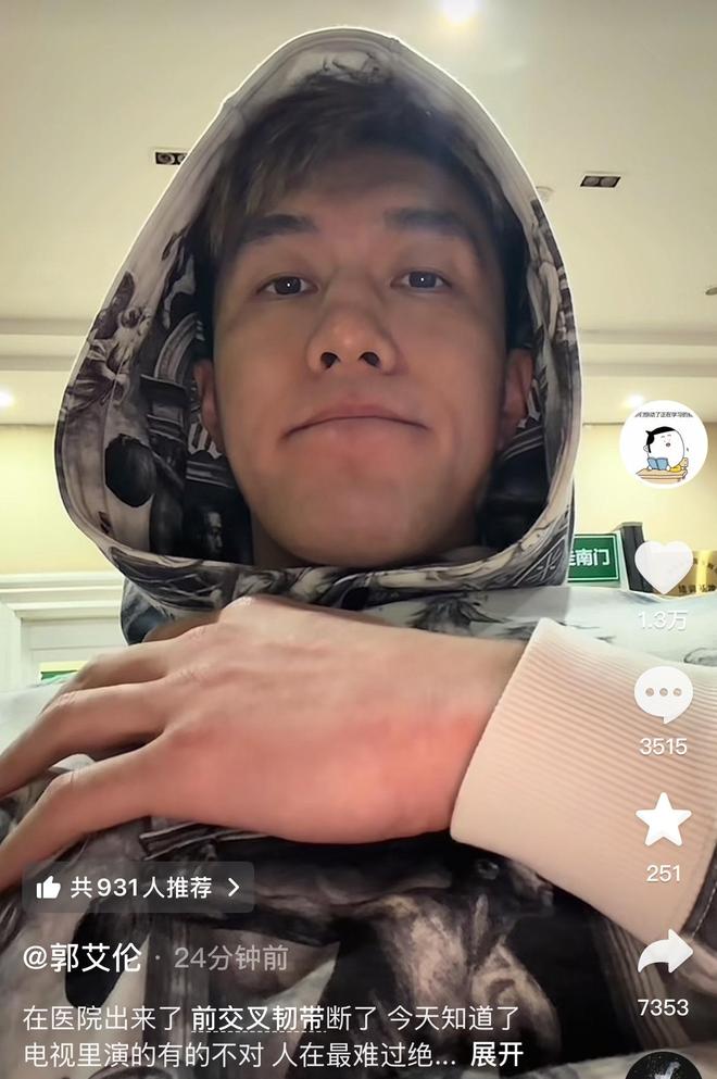 赛后,郭艾伦及时更新社交平台,配文说:“在医院出来了,前交叉韧带断了。今天知道了电视剧里演的有的不对,人在最难过绝望的时候不是一直哭,哭完是会笑的。”