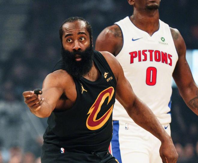 活塞队今天的策略偏向前者,坚决不让哈登轻松出球,给他单打的机会,同时用奥萨尔汤普森这样的年轻悍将贴身缠斗,末节甚至让康宁汉姆亲自协防,试图在哈登最擅长的左侧进攻区域制造麻烦。比赛开局,哈登火力全开,一上来就连得7分,帮助骑士队迅速进入状态。但活塞队很快调整,防守强度骤然提升,哈登的投篮手感开始冷却。骑士的优势在于,即便哈登下场,板凳席上还有施罗德这样的持球点可以接管球权。而活塞一旦康宁汉姆休息,进攻组织就明显断档,缺乏另一个可靠的持球发起点。这一点在末节体现得淋漓尽致:哈登带队一度领先11分,活塞凭借防守反击和快速转换追到只差3分,但他们更多依赖抢断后的快攻得分,而不是半场阵地战的稳定输出。