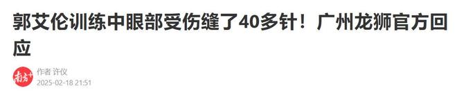南方日报|郭艾伦训练中眼部受伤缝了40多针!广州龙狮官方回应