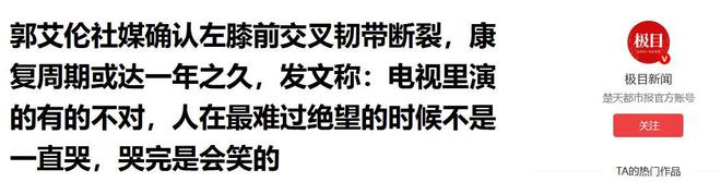极目新闻|郭艾伦社媒确认左膝前交叉韧带断裂,康复周期或达一年之久,发文称:电视里演的有的不对,人在最难过绝望的时候不是一直哭,哭完是会笑的