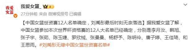 上一篇: 中国女篮世预赛12人名单出炉!曝刘禹彤最后时刻落选:3战得分第1