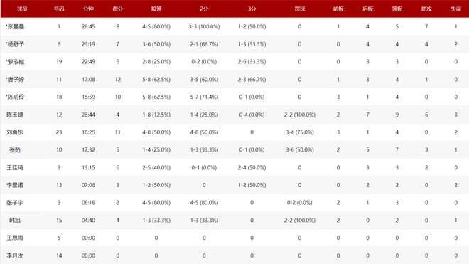 对阵捷克一战,刘禹彤是全队发挥最出色的内线,全场比赛18分钟,8中4,拿到11分4篮板,命中率50%,陈明伶10分,韩旭2分,张子宇8分。