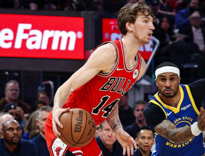 中场休息回来,双方第三节均是单节得分30+展开对攻,公牛扩大12分领先优势,理查德三分命中。公牛连得4分,勇士之后以61-73落后,波尔津吉斯爆发率领勇士打出一波18-2攻势反超4分。公牛回敬一波10-2攻势夺回领先,霍福德上篮得分,公牛连得4分,双方第三节维持单节32-32,三节结束勇士83-89落后公牛。前三节比赛,公牛三分35中11,布泽利斯24分与吉迪16+7+14,引领5人得分上双;勇士三分38中15,波尔津吉斯15分4盖帽引领4人得分上双。