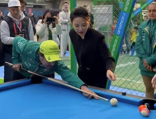 3月12日,阿斯顿马丁车手费尔南多-阿隆索与“九球天后”潘晓婷,以及两位男篮名宿杨鸣和刘炜在活动中进行了联动。