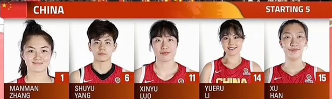 本场比赛主帅宫鲁鸣在首发方面稍作调整,遣上了:张曼曼、杨舒予、罗欣棫、李月汝和韩旭。