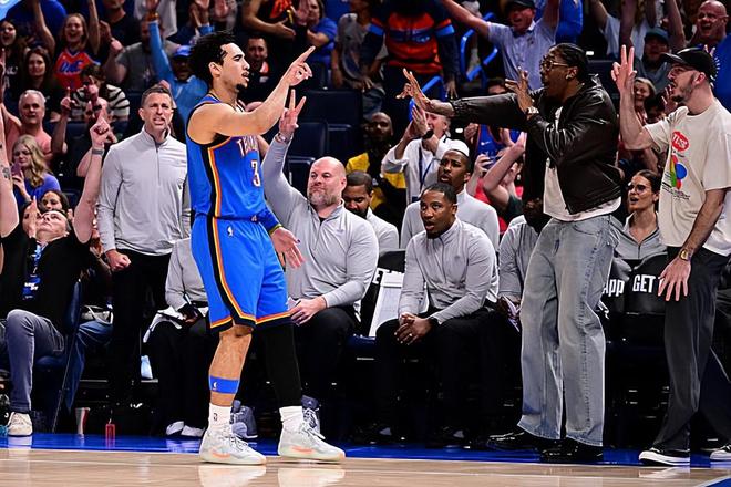 本场比赛中,雷霆的替补后场新援贾里德-麦凯恩(Jared McCain)的表现还是值得肯定的。麦凯恩全场出场17分14秒,投篮10中5,三分线外9中5,得到了15分1助攻的数据,正负值为+13。麦凯恩在进攻端还是展现出了自己不俗的得分能力和投射能力,他也是通过自己在外线投篮方面的表现得到了不少的分数,命中了多记三分,他在进攻端也是起到了很好的效果的。麦凯恩在防守端的表现其实也算是中规中矩,也没有出现什么太大的问题,也是发挥出了自己在各方面的表现的。麦凯恩在本场比赛中也算是已经起到了应该起到的作用,他在场上时球队的局面也是值得肯定的,这样的不俗表现也是为球队的这样一场胜利起到了不少的作用的。