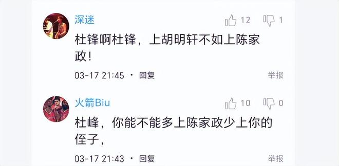 本赛季开赛以来,胡明轩一直处于低迷状态,可以说是断崖式下滑,最近三场得分都是个位数,多顶数据创了赛季新低。昨晚若是有两个这样的胡明轩,广东队绝对输球。球迷喊话杜锋:上胡明轩不如上陈家政!还有的球迷说:杜峰,你能不能多上陈家政,少上你的“侄子”(指的是胡明轩)个人认为,胡明轩的确不能再重用了,也不能再让他控球了,只有由徐杰控球,才能打出正常的水平。杜锋,你该醒一醒了,听取球迷的建议吧。
