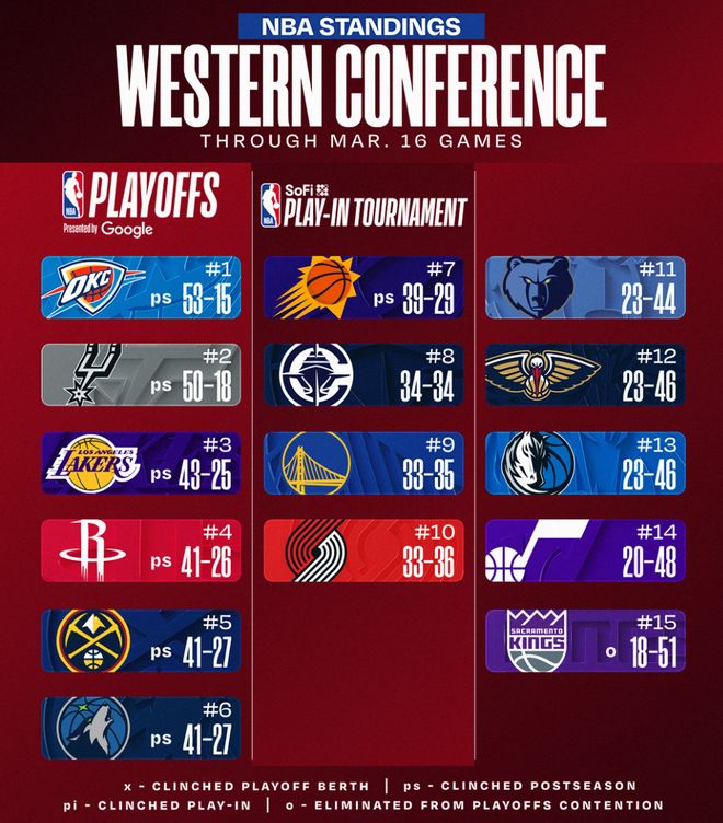 此役后湖人43胜25负西部第三,火箭41胜26负西部第四,湖人跟火箭已经拉开1.5个胜场,湖人跟掘金、森林狼更是拉开2个胜场,湖人已经稳住西部第三的席位。