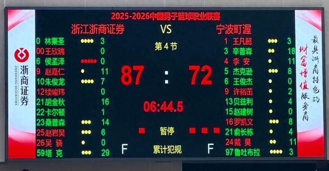 广厦以87:72的大比分战胜了宁波队。