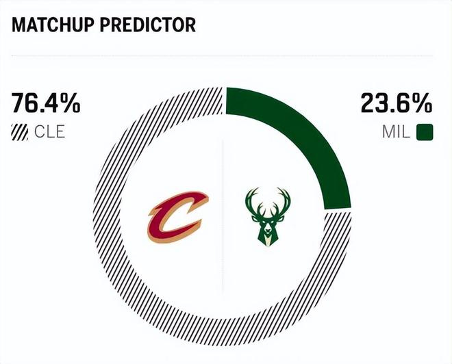 赛前,美媒ESPN对本场比赛进行了预测,雄鹿胜率仅有可怜的23.6%,骑士胜率高达76.4% ,断崖式领先。
