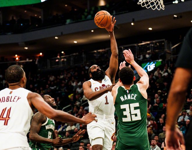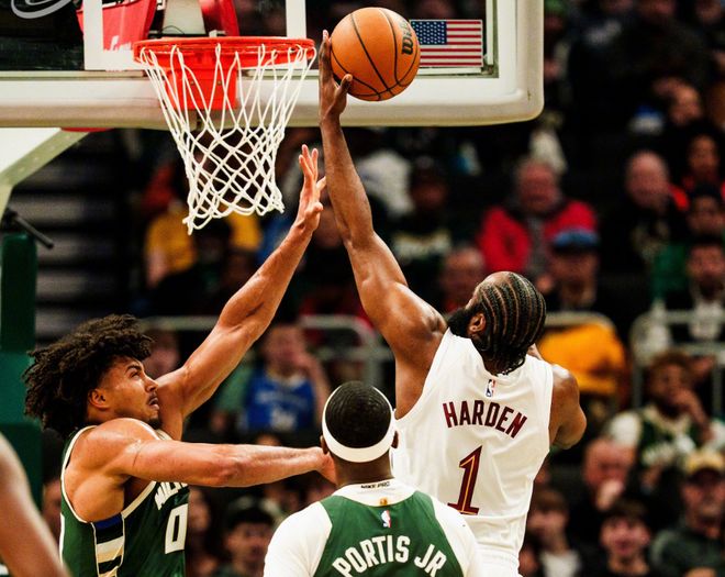 后半段轮到哈登发力,挡拆后撤步三分+变向造三分犯规,随后哈登顶着波蒂斯完成2+1,点名罗林斯对抗抛投,节末米切尔和托布内外开花,第一节打完时,骑士37-24领先雄鹿,哈登第一节不知不觉就砍下14分,状态很好!第二节泰森和托布帮助骑士一度拉开15分分差,但很快雄鹿就展开反扑:波蒂斯+皮特南斯+吉昂下三分雨,一波流追到只差7分!暂停回来,罗林斯也续上三分,此后罗林斯和吉昂内外开花,雄鹿反超了!哈登喂饼韦德止血,随后哈登继续冲击上篮造杀伤,不过雄鹿手感确实出来了。