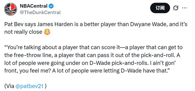 “韦德关键球强不强?绝对强。有时候我们确实见过韦德比哈登更关键、更绝杀的时刻。但要说谁是更好的球员——哈登是比韦德更强的球员。”
