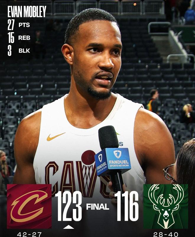 由于雄鹿缺少字母哥坐镇篮下,莫布里完全掌控篮板拼抢与护框大权,既能持球强攻取分,又能拼下前场板完成二次终结,3次封盖更是直接掐灭雄鹿多次内线强攻企图,骑士内线得分以56比34大幅领先,莫布里功不可没。