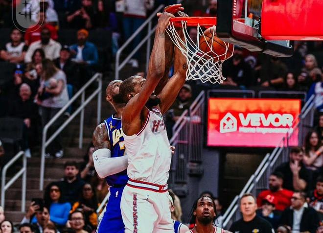 本场比赛,双方在首发阵容上面,湖人这边派出的是,东契奇,里夫斯,詹姆斯,艾顿,斯马特,火箭这边派出的是,杜兰特,申京,阿门汤普森,小史密斯和伊森。首节比赛开始,湖人率先拿到球权,詹姆斯三分线外火速跳投命中,打进本场比赛首个进球,阿门禁区强起飞身灌篮也为火箭开张,艾顿高高跃起,空中接力飞身得手,詹姆斯华丽拉杆上篮也强势命中,汤普森空切篮下,吃饼扣篮回应一球,艾顿又踏雪无痕抢到进攻篮板,大力补篮得手。詹姆斯反击一条龙,面筐冲击篮下挑落两分,申京梦幻脚步晃开防守,转身上篮也擦板命中。