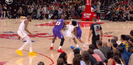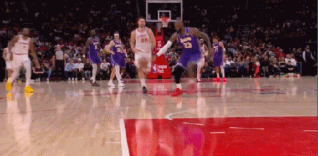 湖人还是得靠41岁的老詹,詹姆斯为里夫斯挡拆后顺下,空接暴扣2+1追平比分