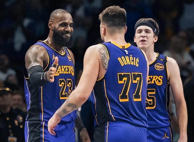 湖人队继续在客场挑战火箭队,两天之前,湖人队仅让火箭队得到92分,火箭队22次失误简直没法看;两天之后,申京复出,火箭队的进攻有所回暖,火箭队在落后13分的情况下顽强反扑,利用失误打反击一度将分差反超。可是到了关键时刻,火箭队还是不会打球,湖人队大火收汁收割比赛,以124-116险胜火箭队!尤其是东契奇和老詹,联手包办70分+14篮板+12助攻+9记三分球,巨星成色让杜兰特望尘莫及!此役过后,湖人队豪取7连胜,战绩来到44胜25负,继续稳固西部第3的排名。