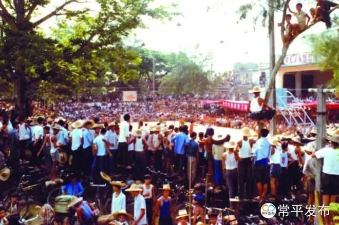 20世纪70年代末常平公社乡村篮球比赛的现场(图源:常平发布)