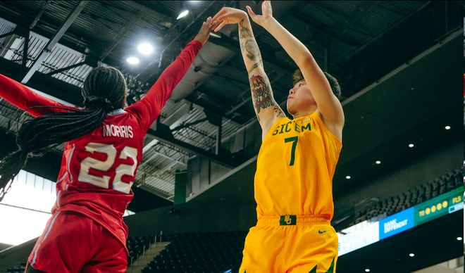 大一赛季,邓雨婷在奥本大学场均交出11.8分,并且在一场对阵范德堡大学的比赛中,狂揽27分9篮板,创下中国球员在NCAA D1的得分纪录。而本赛季转投篮球强校贝勒大学,邓雨婷依然坐稳了球队的主力轮换位置,在场均16.8分钟的上场时间里,可以得到6.8分2.1篮板,42.8%的投篮命中率和37%的三分球命中率相较于大一在奥本,甚至有了不小的提升。