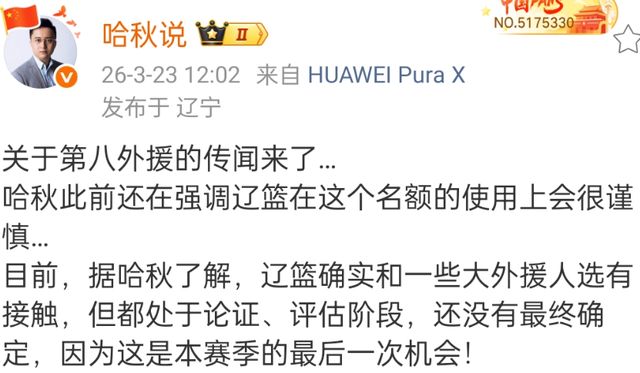 辽宁男篮拿到了一波6连胜之后,主场输给北京首钢,也让球队意识到内线的问题,莫兰德下场之后,张陈治锋无法顶上来。根据媒体消息,辽宁男篮已经开始寻找大外援,目前也有了一些目标,但具体换谁还没有正式确定。