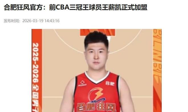 2026年3月19日,NBL合肥狂风篮球俱乐部通过官网及全平台同步官宣:功勋级外线球员王薪凯正式加盟,将身披象征荣耀的20号球衣,代表球队征战本季NBL联赛。这条消息一经发布,即刻点燃广东球迷的情感开关,评论区瞬间泪目刷屏,“他回来了”成为当日最热话题。