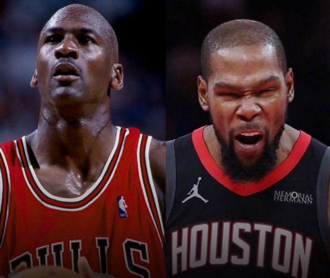 杜兰特本赛季在总得分榜上,已经先后超越张伯伦与诺维茨基,不断提升自己的历史排名。如今在对决热火的比赛之前,杜兰特生涯常规赛已经得到32267分,距离飞人乔丹的32292分,还有25分的差距。换言之,杜兰特只要再得到26分,即可完成对于乔丹的超越。